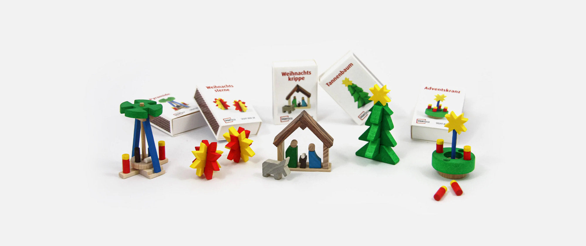 Spielerische Weihnachtsdekoration für den Adventskalender, kreatives Holzspielzeug für Kinder und Erwachsene und bekannte deutsche Bauwerke als Miniatur-Bausatz - Unsere SightBox Miniatur-Bausätze werden von Hand in Deutschland gefertigt und in einer Streichholzschachtel verpackt.